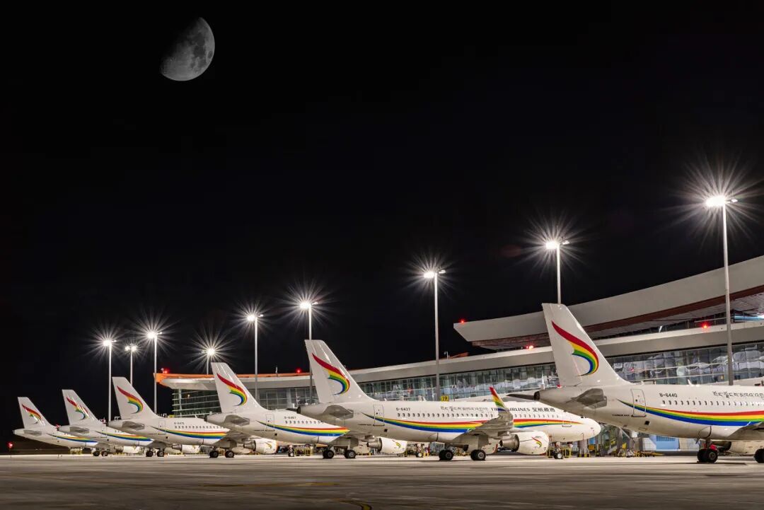 西藏地域辽阔、地形复杂,航空运输长期以来是连接雪域高原与内地的重要纽带。截至目前,西藏航空在拉萨贡嘎国际机场投入驻场运力十余架,是区内唯一实现夜航常态化运行的航空公司。公司累计开通涉藏航线50余条,覆盖所有援藏省市,执飞的高高原航线比例超过50%,逐步构建起以拉萨为中心、辐射西藏全域的“空中走廊”。通过加密航班、优化时刻,西藏航空有效提升了偏远地区民众的出行效率。