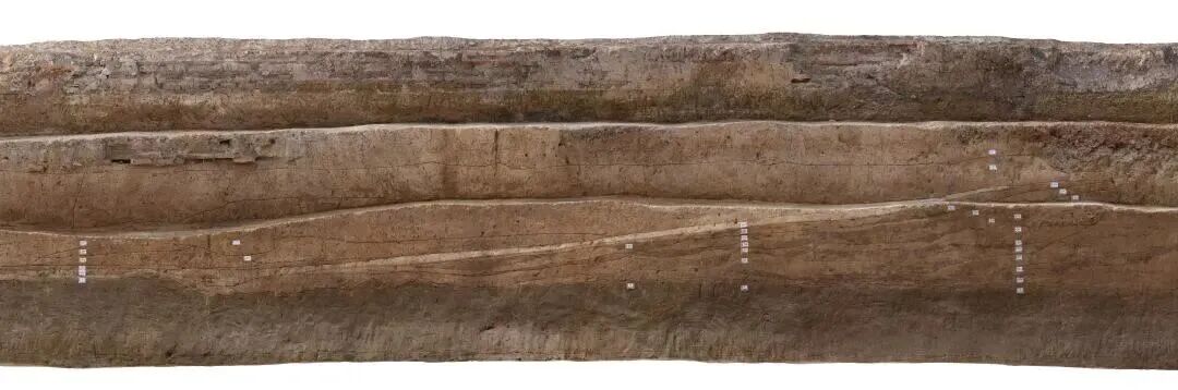 发掘中还揭露出上下两层坚硬的踩踏面,下层硬面上留有车辙印与工具痕迹,印证了台基夯筑过程中存在阶段性的运土与施工活动。更为重要的是,夯土内清晰的版筑痕迹及东西两侧土色、夯窝的差异,反映出当时已出现分工明确、分块协作的施工组织方式。