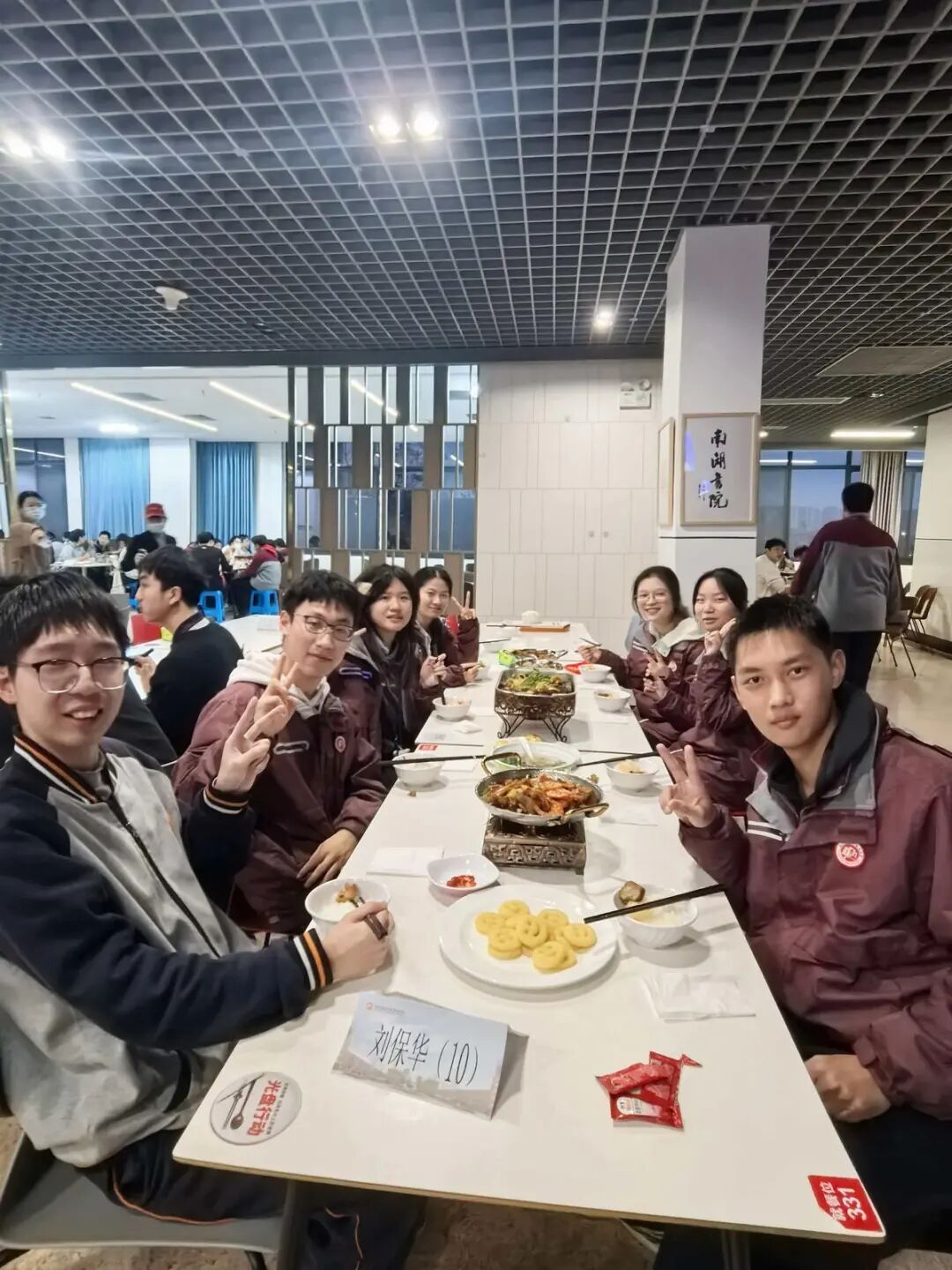 吃暖锅的时候,学校食堂就变成了桌餐,同学点餐后直接围坐到桌子旁,让食堂工作人员上来点火,大家围在一起聚餐。