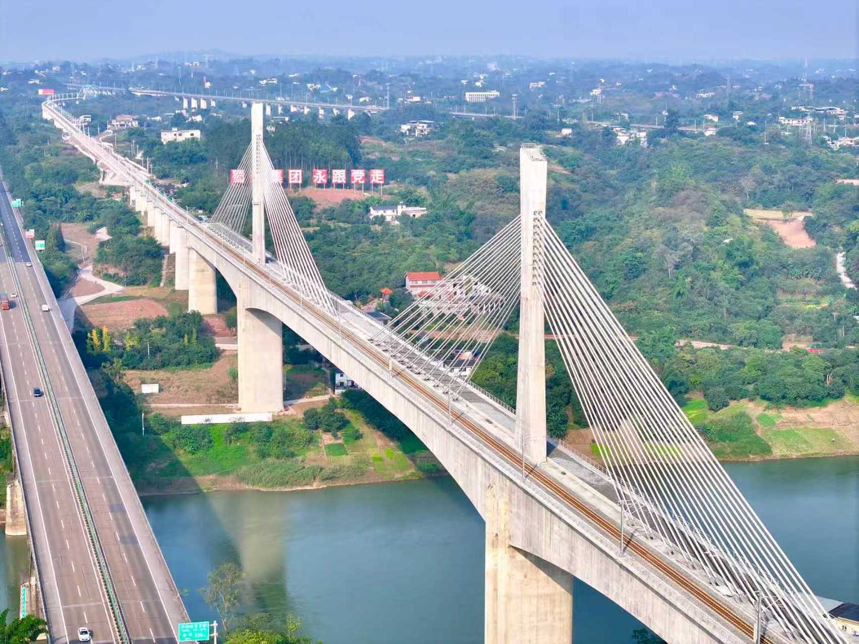 泸州金山沱江铁路大桥,是国内最大跨度的铁路单索面斜拉桥