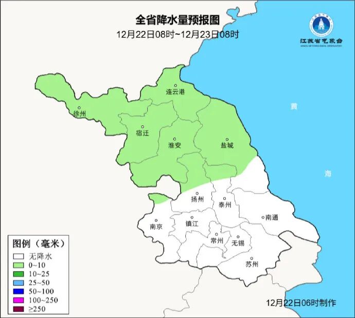 12月22日08时至12月23日08时白天全省多云到阴其中本省西北部地区有时有小雨夜里长江以北地区阴有小雨其他地区多云转阴