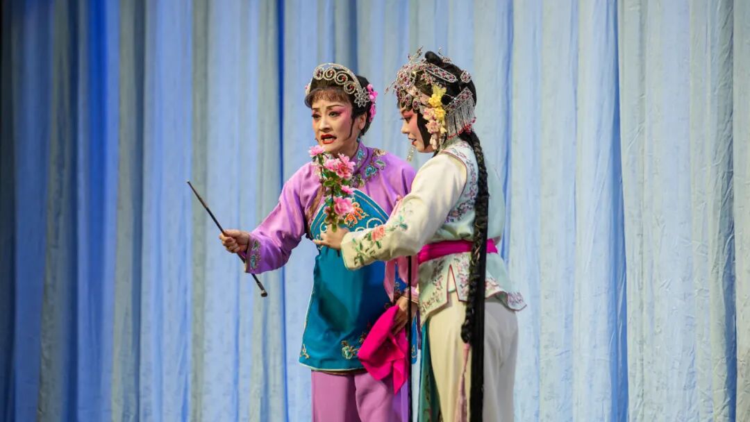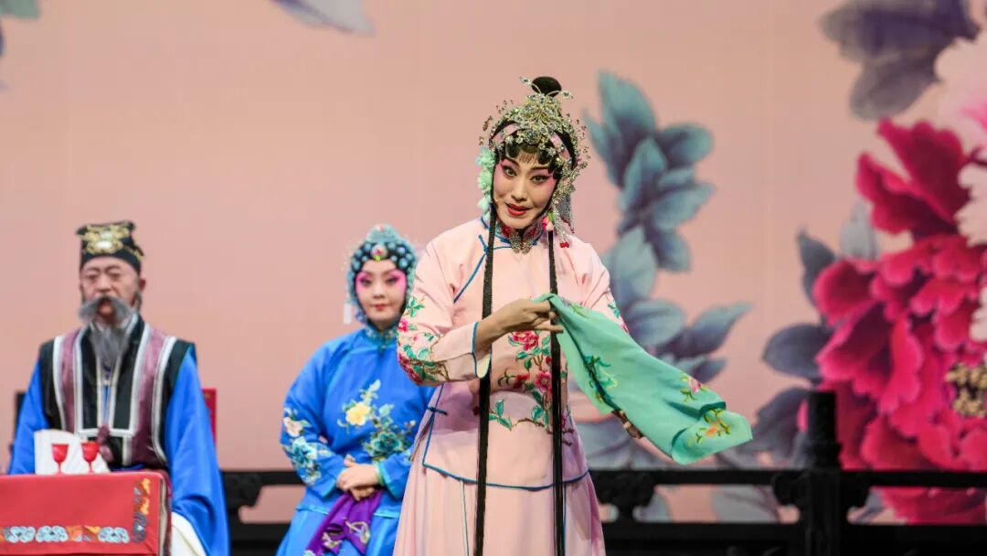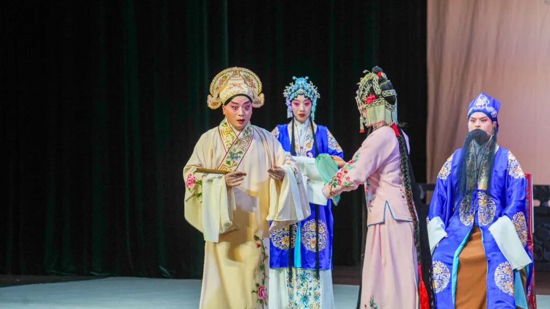 随着剧情推进,台上演员们以婉转唱腔演绎悲欢离合,更凭一招一式的细腻身段道尽角色心底千回百转的情绪。两对有情人历经误会猜忌终成眷属的故事,在演员们传神的演绎中愈发牵动人心。