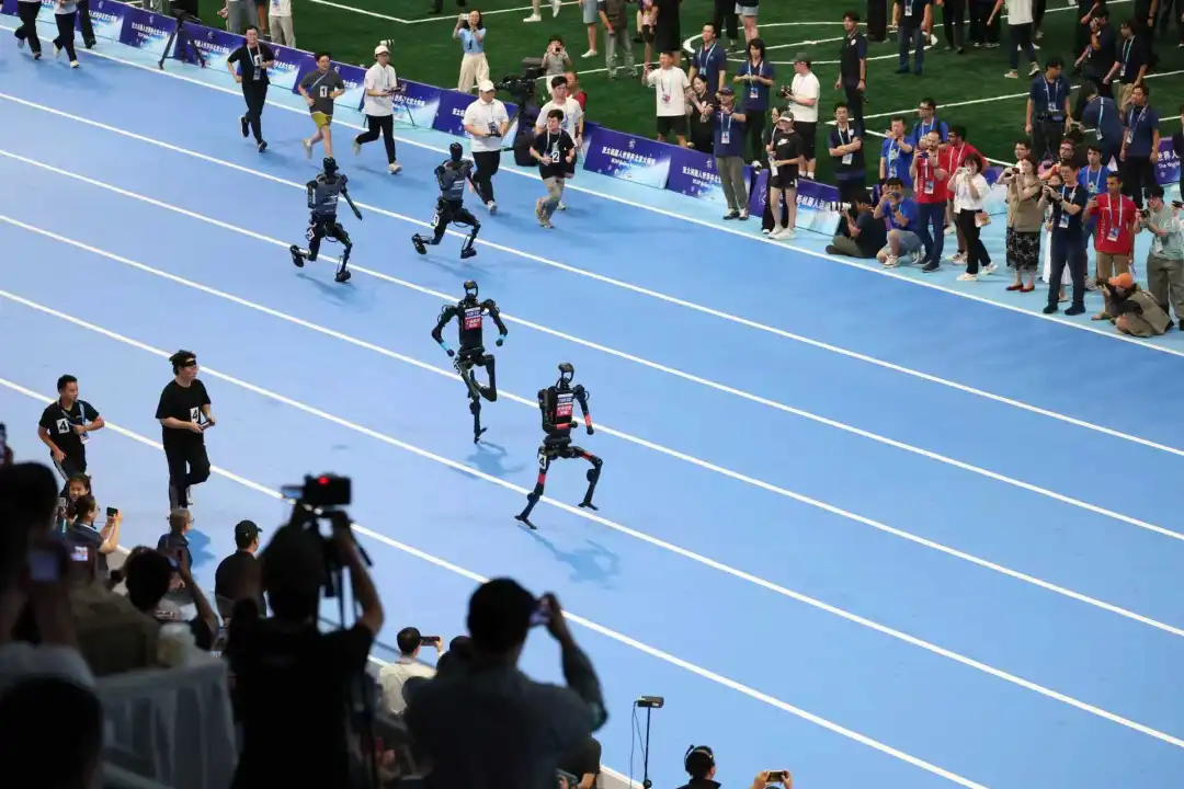 2025世界人形机器人运动会最后一天的100米决赛。(摄影 程功)