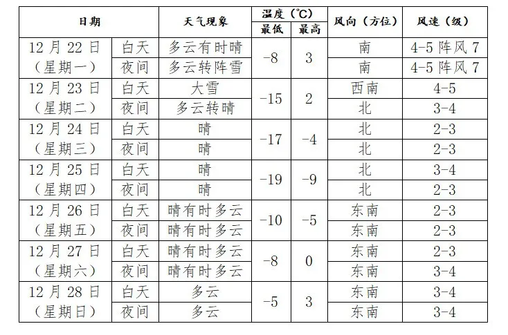 预计明天(23日)早晨至白天,沈阳市和平区、沈河区、铁西区、皇姑区、大东区、浑南区、沈北新区东部、苏家屯区、经济技术开发区大到暴雪,平均降雪量7~12毫米,新增积雪深度5~8厘米;其他地区中到大雪,平均降雪量3~7毫米,新增积雪深度3~5厘米。