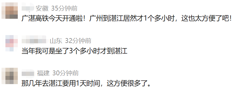 广湛高铁的开通运营,大幅缩短了粤港澳大湾区与北部湾城市群的时空距离,极大便利沿线人民群众出行,对完善区域路网布局,发挥粤港澳大湾区辐射带动作用具有十分重要的意义。