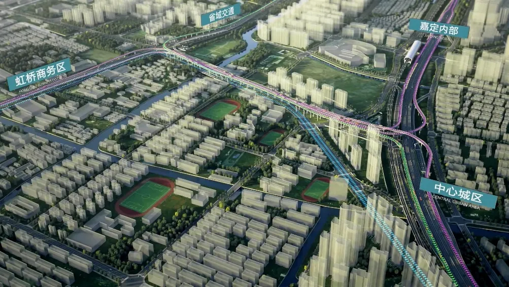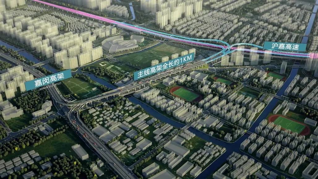 沪嘉-嘉闵联络线主线共设置嘉闵高架立交、S5沪嘉立交两座Y型互通立交,通过上跨结构分别与嘉闵高架和沪嘉高速实现对接。其中,S5沪嘉立交南侧将设置“跳水台”,未来结合S5沪嘉高速抬升项目,实现联络线与沪嘉高速至中环段的贯通。