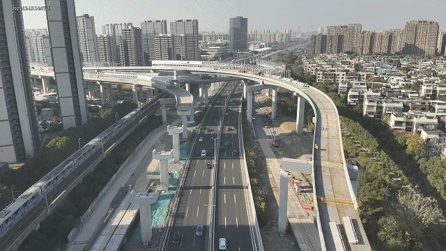 目前工程正加快推进高架道路最后一层路面沥青摊铺,声屏障架设已完成超过90%。下一步将抓紧进行道路标志标线划设、指示牌安装、灯光设备调试以及陈翔公路匝道与地面道路衔接等附属设施的施工。沪嘉-嘉闵联络线整体有望在年底前具备通车条件。