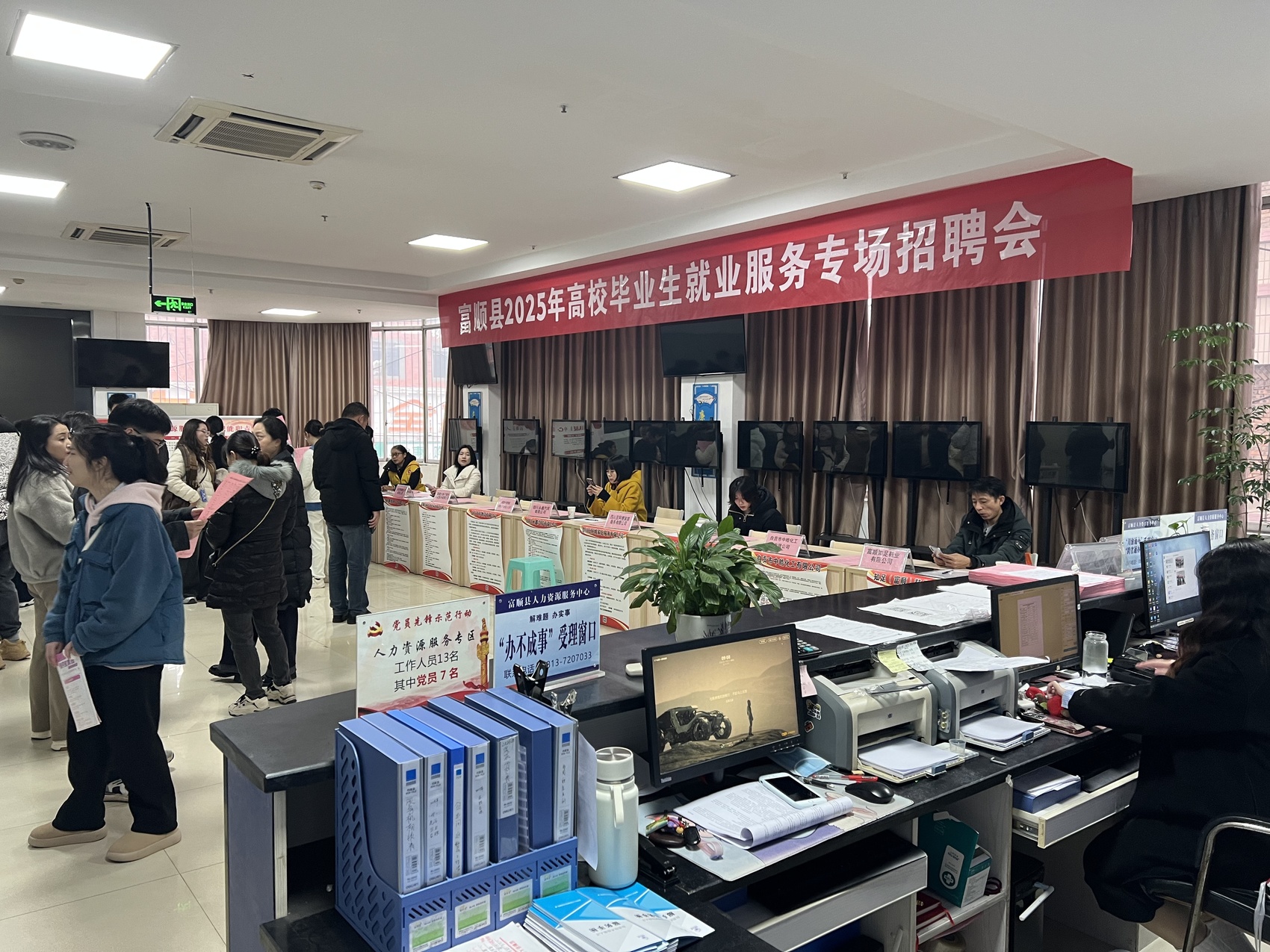 近日,富顺县“送岗促就业 服务暖民心”2025年高校毕业生就业服务专场招聘会在该县人力资源服务中心招聘大厅举行。旨在搭建高效供需对接平台,促进高校毕业生等人才在“家门口”实现高质量就业,为县域发展聚智汇力。
