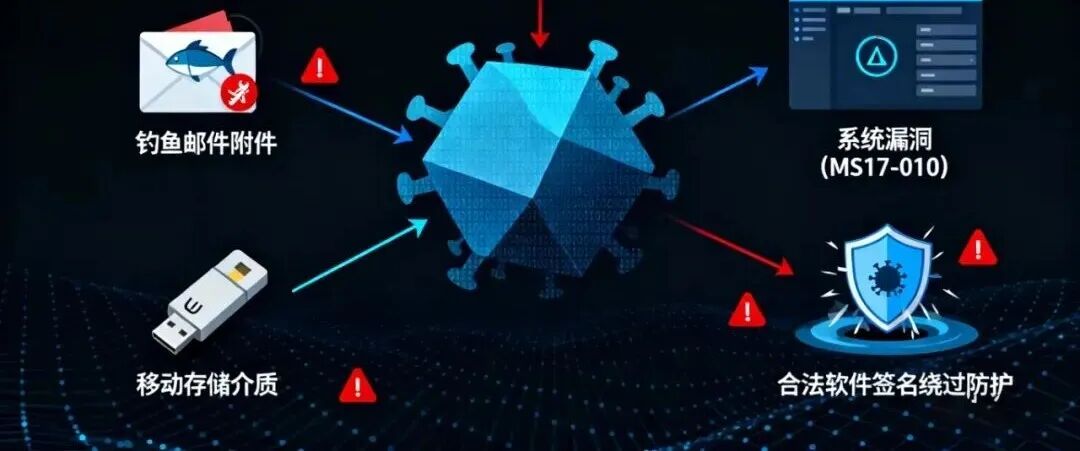 传播途径多元:通过钓鱼邮件附件、云共享链接、系统漏洞、移动存储介质等多种方式传播,部分病毒能利用合法软件签名绕过安全防护。