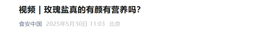 在我国,“玫瑰盐”仅限工业用途,不符合食用盐食品安全标准,不得作为食用盐流通使用。