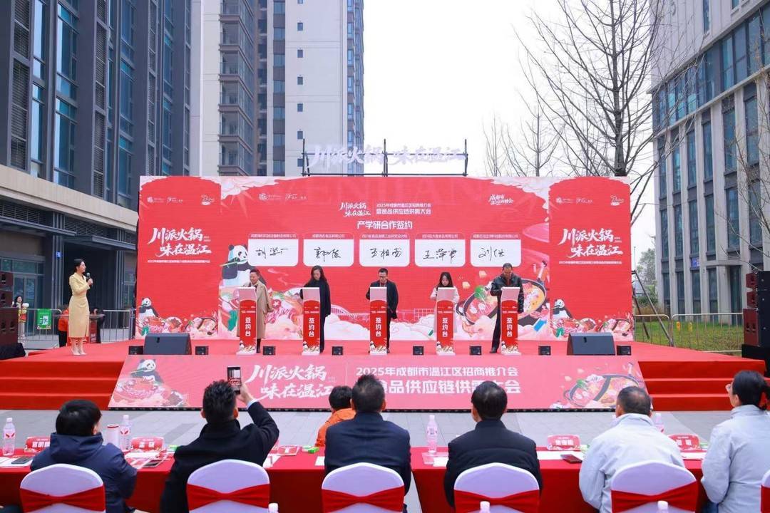12月20日,2025年成都市温江区招商推介会暨食品供应链供需大会在金马街道举行。本次大会汇聚来自火锅产业链上下游50余家企业、30余家餐饮采购商,以及行业协会、高校院所、金融机构代表,让“幕后”的优质供应链企业走向“台前”,精准对接市场供需,共同烹煮一锅产业协同的“热辣红汤”。大会现场发布《温江绿色食品供给清单》,将区内40余款火锅周边产品与服务能力系统梳理、集中呈现,通过高效、透明的对接平台激活产业发展动能 。
