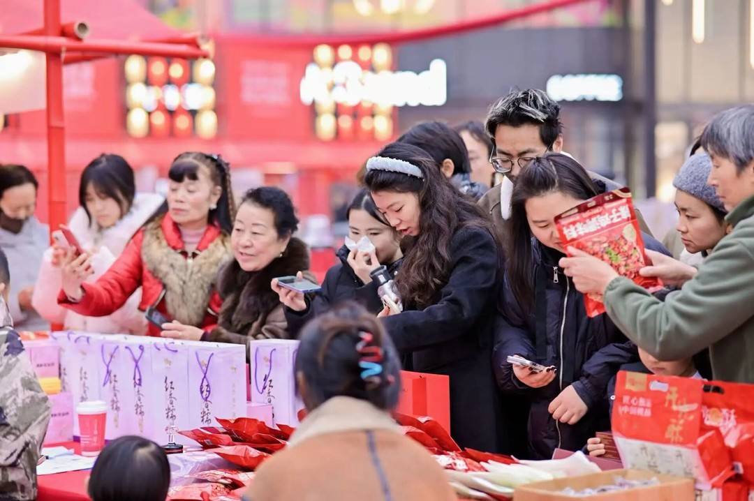 集市一角,就业帮扶展位前也有不少人驻足咨询。工作人员耐心解答着各类就业政策与岗位信息,让热闹的节庆活动,亦承载起实实在在的服务功能。
