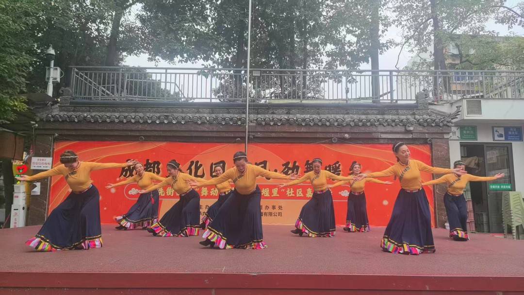 舞台之上,文艺汇演精彩纷呈。传统舞蹈曼妙雅致,尽显中华文化的博大精深;民族舞者身着特色服饰,将川西田间劳作的质朴与邻里欢聚的热闹融入舞步,洋溢着醇厚的烟火气息;现代舞蹈节奏明快、动感十足,展现出浆洗街街道文体团队的蓬勃朝气;非遗变脸表演更是惊艳全场,演员瞬间换脸的绝技引得观众阵阵惊呼与掌声,让居民在家门口便感受到非遗艺术的神奇魅力。多样的舞蹈形式交织出满含赤诚的舞台氛围,精准契合不同年龄段居民的文化审美需求。
