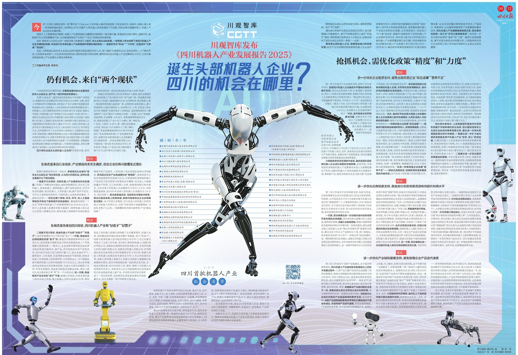 今日《四川日报》重磅推出1个连版智库报道,深度详实解码四川本土机器人产业发展。详细内容可点击阅读(川观新闻版链接)(四川日报版链接)