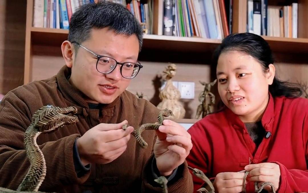 唐川学习宜宾“棕编”非遗技艺。视频截图