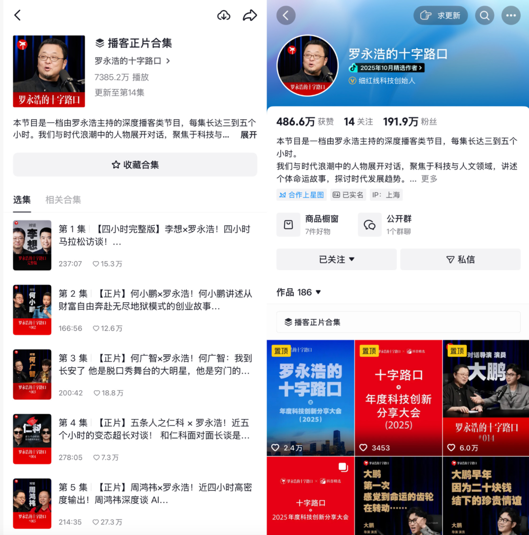 今年8月,罗永浩进军播客领域,开设了自己的播客频道“罗永浩的十字路口”,进一步扩大了自己业务版图。