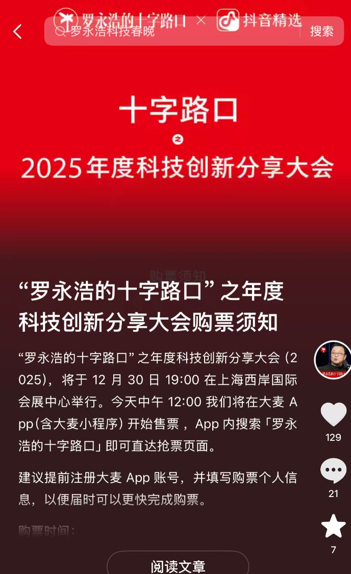 12月22日午间,“罗永浩的十字路口”年度科技创新分享大会正式开售。