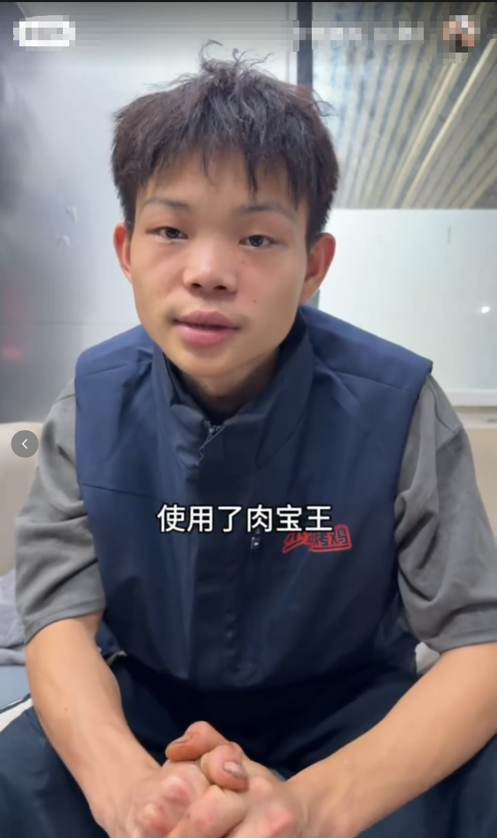 深圳16岁烤鸡少年小陈承认使用了“肉宝王”。视频截图