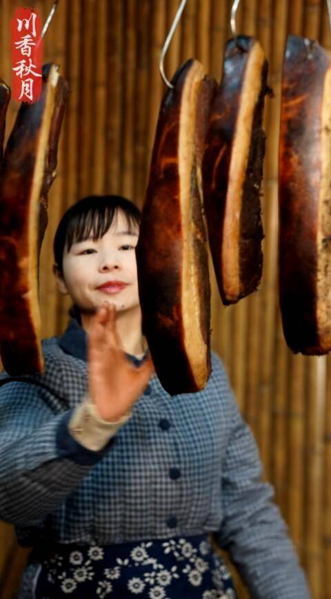 吴秋月通过视频作品宣传老家的腊肉。视频截图