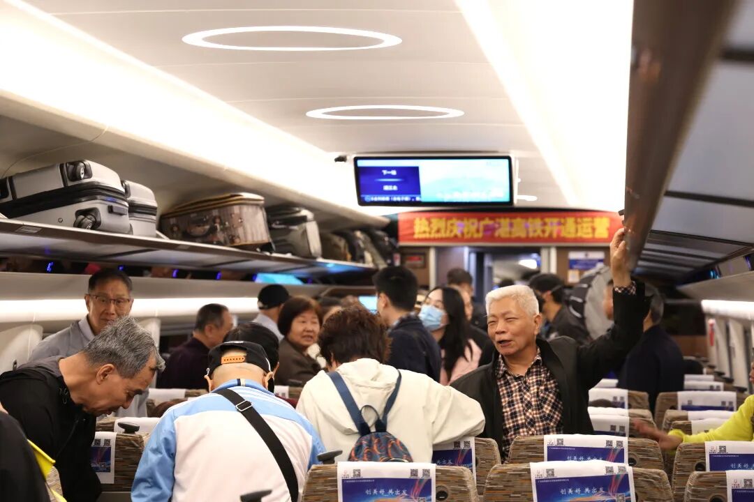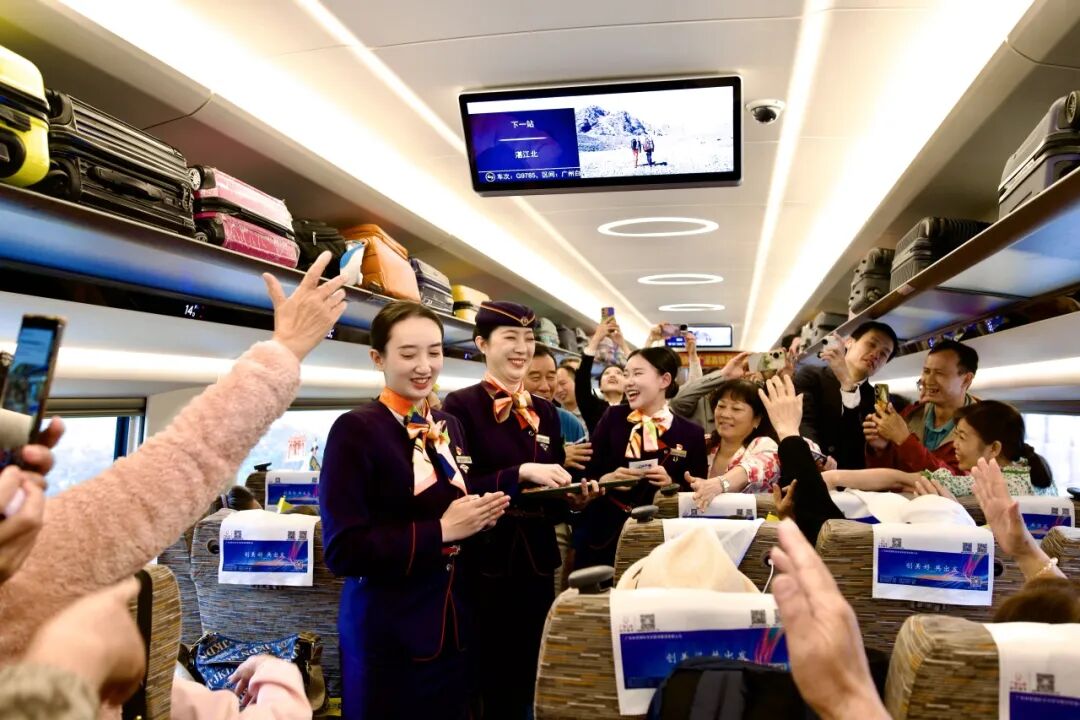 车上也有不少湛江旅客,林女士和姐妹们一起坐着首发车前往湛江。“终于开通了,以后距离更近了,可以当天往返两地游玩。”