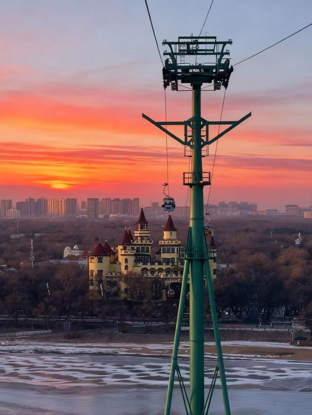 不远处,三位结伴而行的游客正互相分享照片,她们分别来自上海、成都和苏州。来自上海的肖瑶语气中满是欣喜:“我们这次行程特别丰富,既看了演唱会又玩了雪,没想到坐索道还有意外惊喜。”来自成都的张天琳接着说:“我们正好赶上日落,夕阳洒在江面上特别美,更巧的是,还看到前方驯鹿轿厢燃放冷焰火,火光与白雪相映,画面非常治愈。能在哈尔滨遇到这样的场景实在太幸运了,这绝对是我们此行最难忘的回忆之一!”