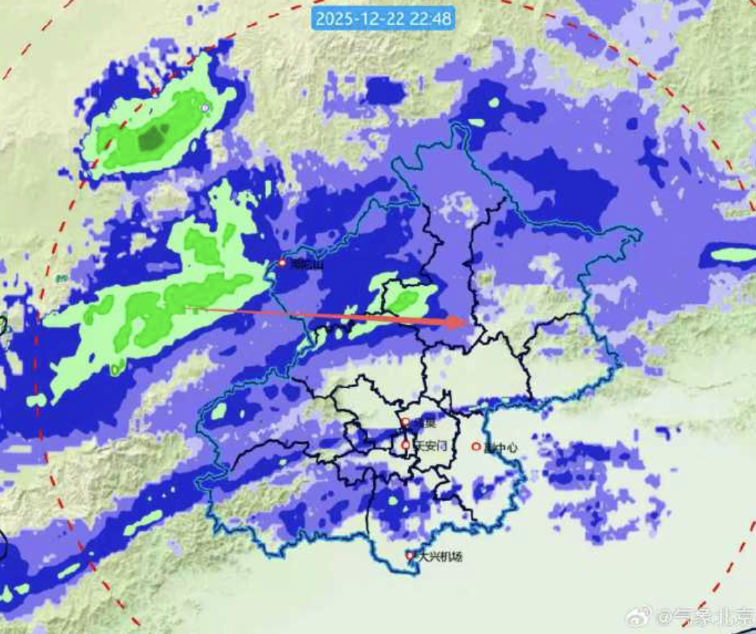 目前,河北北部已出现降雪,降雪量不足1毫米。预计23日0时前后,北京市西部延庆、房山、门头沟开始出现降雪,2时前后影响城区,6时降雪基本结束。
