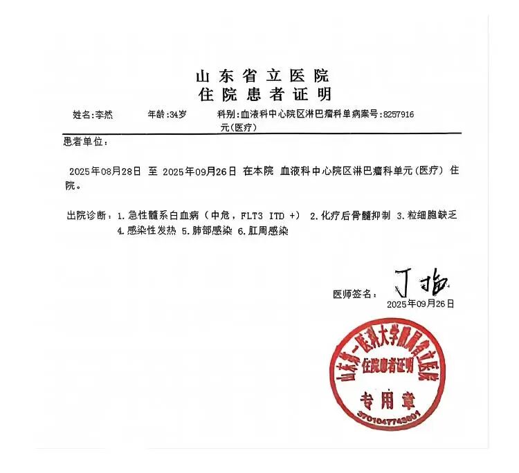 此前,李然已完成三次化疗并使用靶向药物,相关费用接近35万元,正在等待骨髓移植。