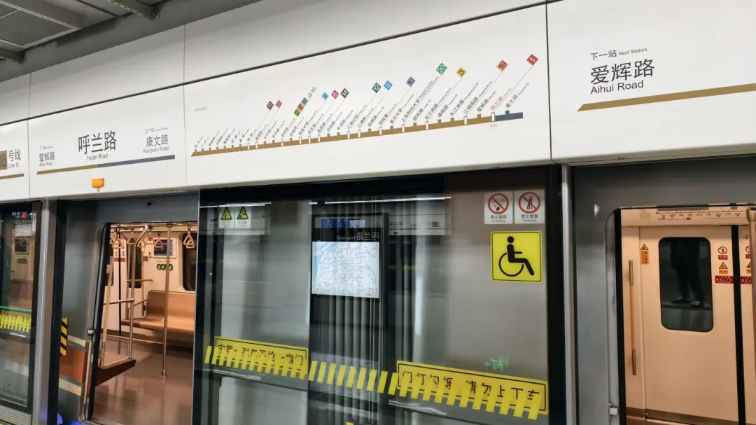 其中,换乘站2座:呼兰路站以通道+天桥的方式与既有1号线换乘;江杨南路站未来将与19号线(在建中)换乘。