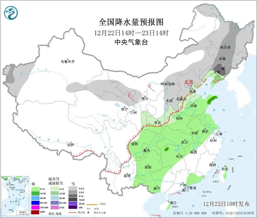 全国24小时降水量预报图。
