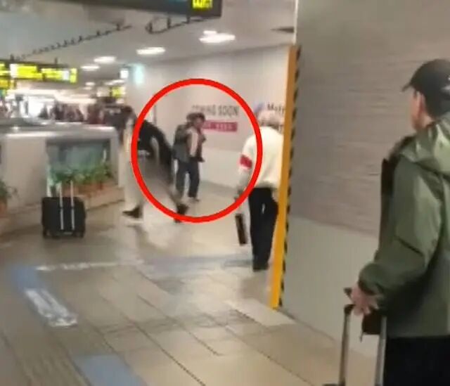 余家昶(红圈处)挺身而出,直奔嫌疑人张文(图右戴帽男子)身边