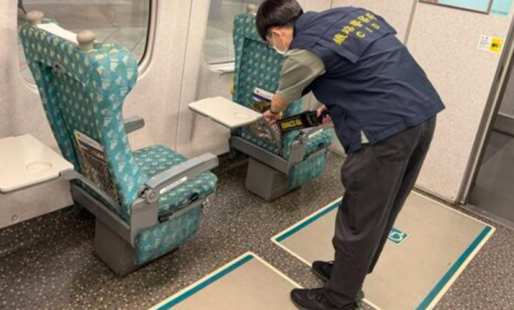 有民众涉嫌谎报高铁列车“将发生爆炸”,铁路警方获报后检查列车。图源:台湾“东森新闻云”