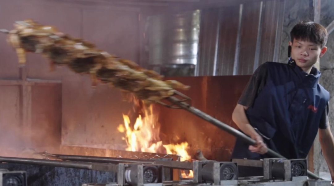 ▲小陈正在烤鸡