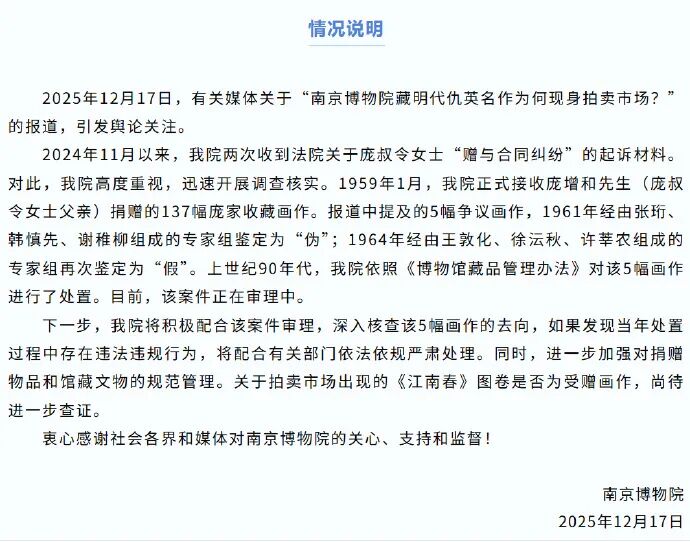 南京博物院工作人员则回复称,关于此事,可关注南博最新官方公告。
