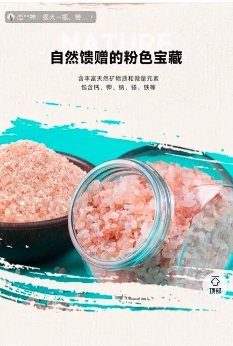 消费者愿意为粉盐的高价买单,除了独特的颜值,还离不开商家营销的“健康优势”。有的商家宣传其“富含84种微量元素”“纯天然无添加”“比普通食盐更健康”,甚至声称长期食用能“平衡电解质、排毒”,泡浴可“缓解关节炎”。