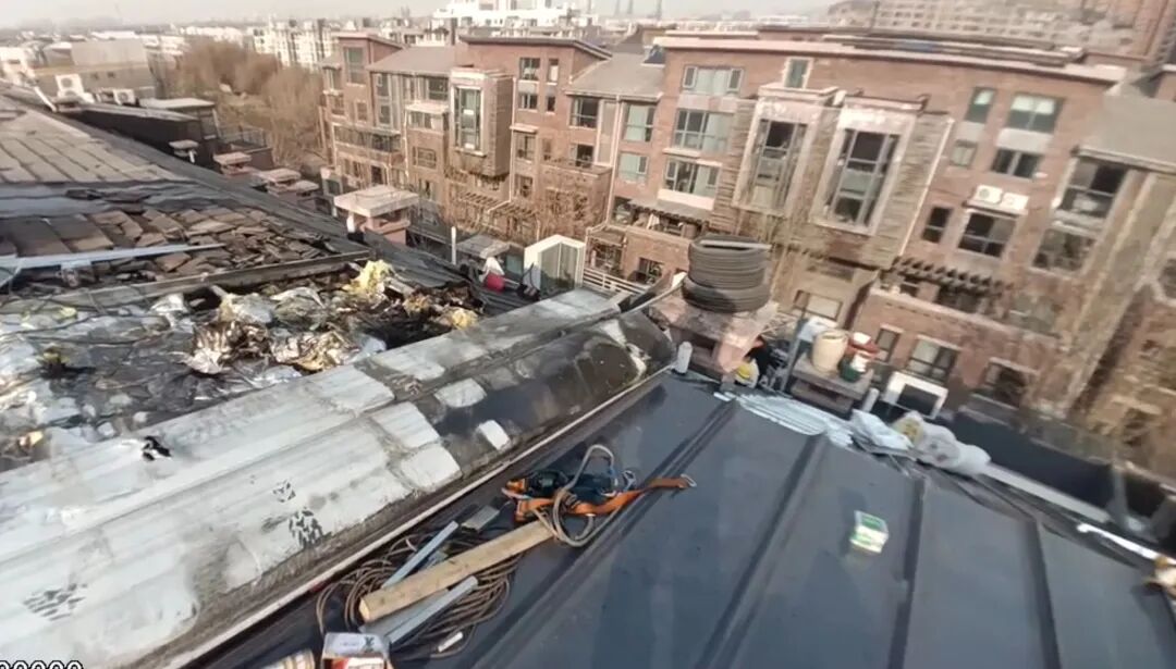 据了解,12月10日上午8时许,施工队在该户楼顶进行保暖和防水施工作业,施工负责人张某某指派施工人员宋某某、荣某某,在该户楼顶使用喷灯进行明火作业,施工过程中,喷灯持续烘烤防水卷材表层油毡,因操作距离过近、火源温度过高,致使油毡迅速熔化并起火燃烧,火势随即沿防水层蔓延,引发火灾,业主发现楼顶冒烟后,立即拨打119电话报警,附近消防救援站接警后迅速到场及时处置,才避免了火灾进一步扩大蔓延。