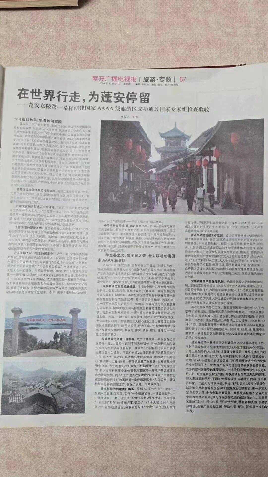 邓四平告诉记者,17年前,南充市蓬安县在创建国家AAAA级旅游景区时,他撰写了一份创建蓬安嘉陵第一桑梓景区的迎检报告,迎检报告主标题就是《在世界行走,为蓬安停留》。由他撰写的这个报告发表在2009年12月31日的《南充广播电视报》上。