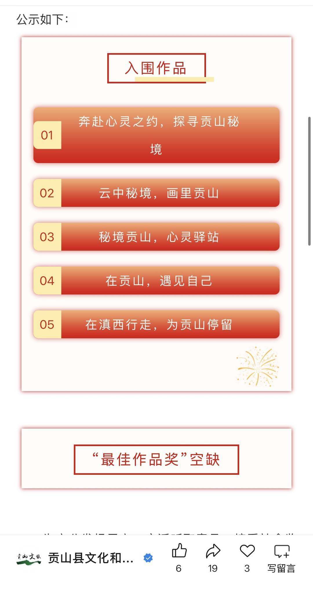 贡山县文旅宣传语征集活动中的入围奖被举报抄袭