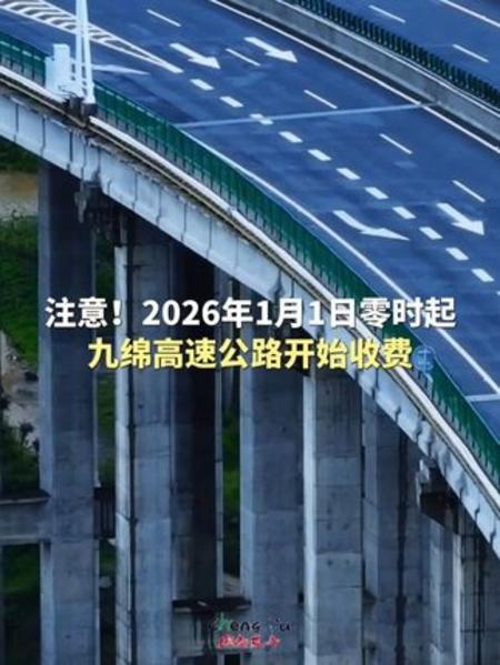 明年1月1日起,九绵高速开始收取车辆通行费:全程约228元 ETC优惠后约169元 #权威解读 #九绵高速 #高速收费