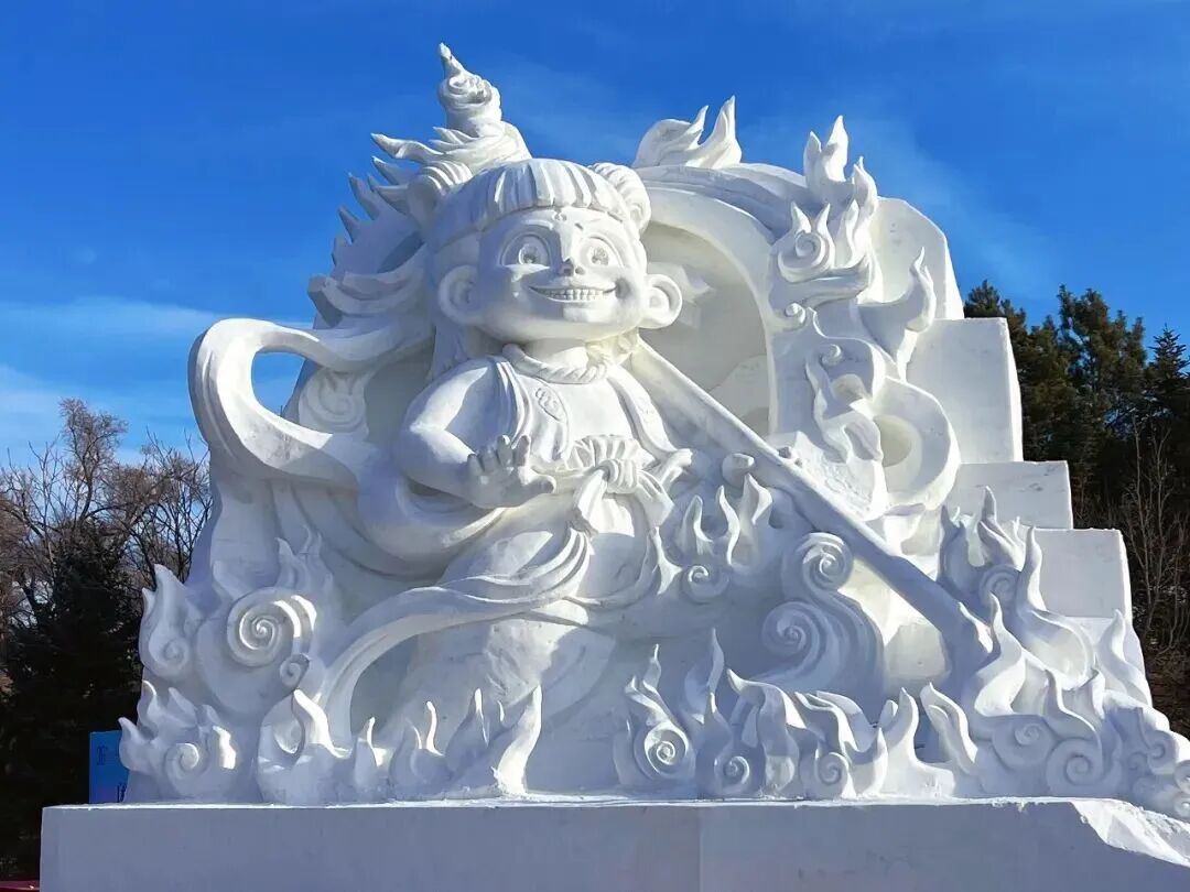 《我命由我不由天》的落成,是传统动漫IP与雪雕艺术在太阳岛雪博会上的深度融合,为第38届太阳岛雪博会注入了鲜活的文化活力,让游客真切感受到“我命由我不由天”的精神力量在这银装素裹的雪世界里热烈绽放。