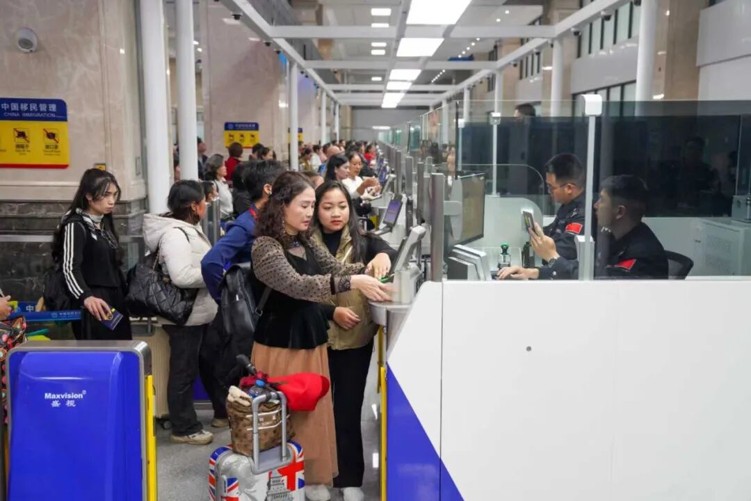 3、云南河口:越南“赏雪团”入境 边检高效保障 受冷空气影响,云南昆明部分景区近日有明显降雪。12月18日,为“赏雪”而来的55个越南旅游团队从云南河口口岸入境。云南边检总站河口边检站增开“旅游团专用通道”,安排精通越南语的民警提供引导,确保跨境旅游团高效顺畅通关。(文:张航 彭正/图:赵国骁)