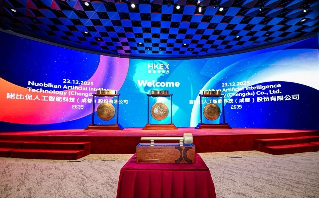 12月23日,诺比侃人工智能科技(成都)股份有限公司在香港联合交易所主板挂牌上市。受访者供图