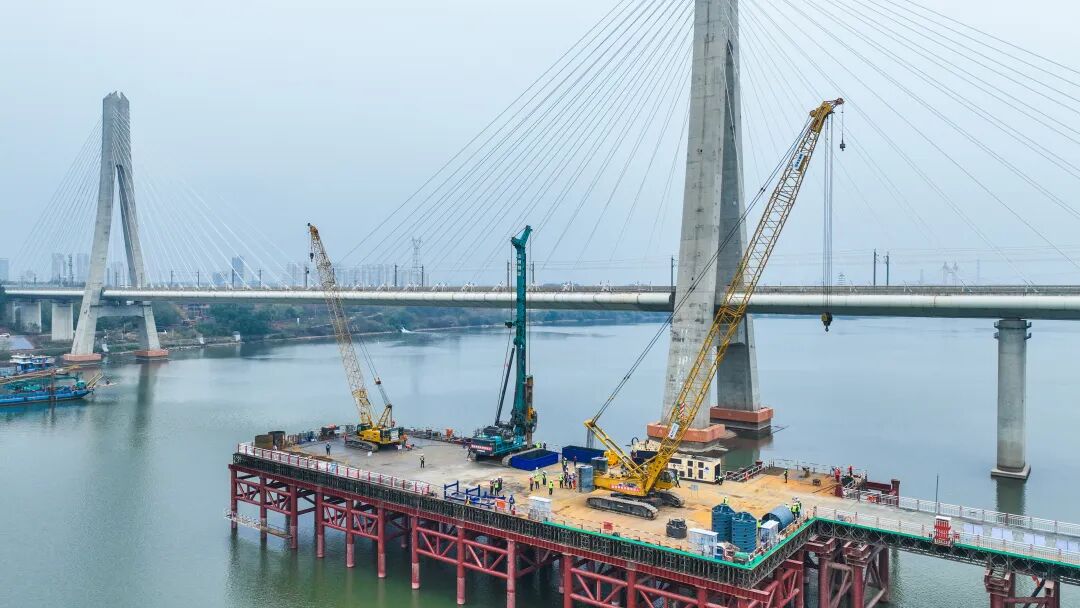 “大桥桩基施工难度不小,既要啃下复杂地质的‘硬骨头’,又要守住旁侧昌赣高铁的运营安全底线,同时还得满足赣江航道的通航要求。”昌九城际铁路股份有限公司赣州指挥部副指挥长杨裕尧介绍,为攻克多重难题,项目方引入信息化智能监控系统,实现施工数据的智能化采集与高精度实时监控,为大桥建设安全保驾护航。
