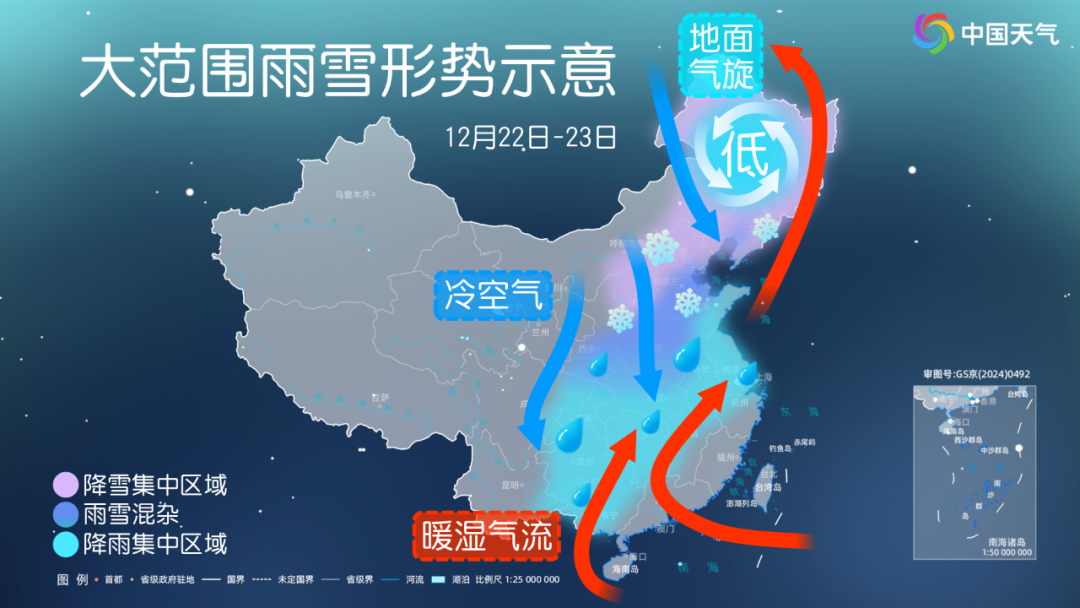 24日(周三):淮河以北晴天;淮河以南阴天转多云,其中沿江江南有小雨,局部中雨,高海拔山区有雨夹雪或雪。