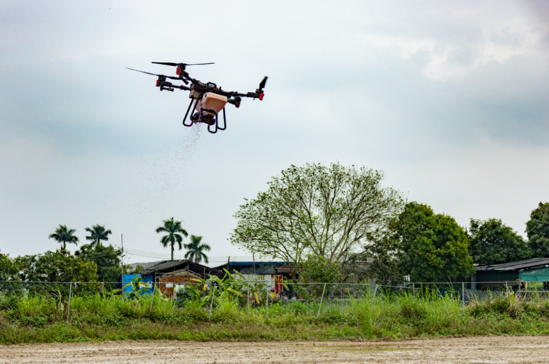 白云区江高镇峡石村无人机助力春耕。图/广州日报全媒体记者:庄小龙 通讯员:石建华