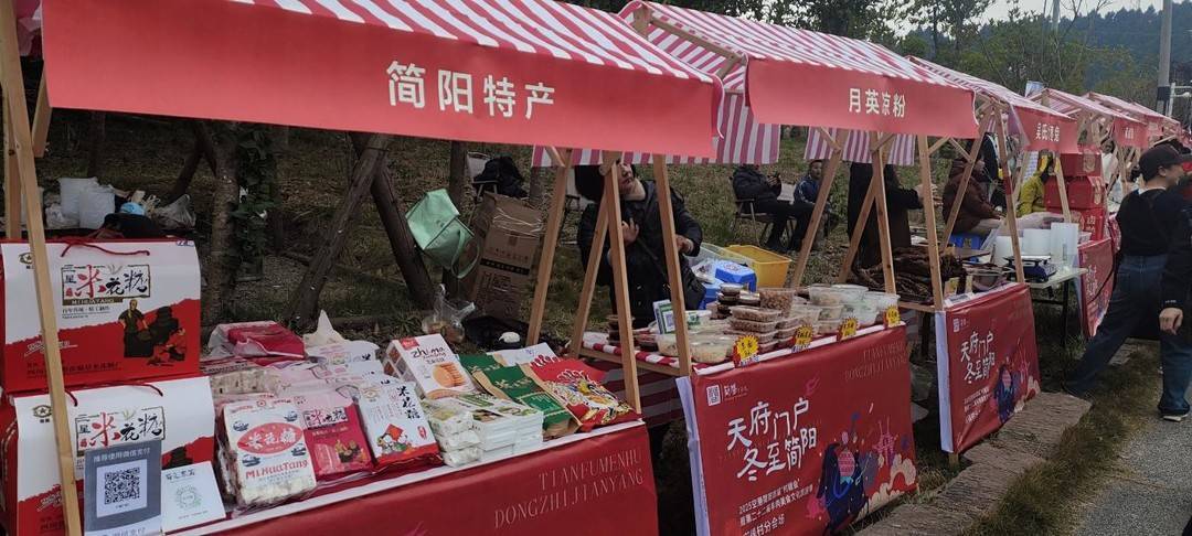 当天上午,活动在石钟镇前锋村“村糖会”拉开序幕。一踏入现场,浓浓的乡土风情与热闹气氛便扑面而来。在各镇(街道)特色产品展销区,返乡家庭们驻足流连,感受乡村振兴的丰硕成果。特色美食体验区更是人气满满,月英凉粉清爽、蒋卤鹅醇香,那一碗碗热气腾腾的简阳羊肉汤,是冬至的味觉仪式,更是家乡温暖的文化符号。