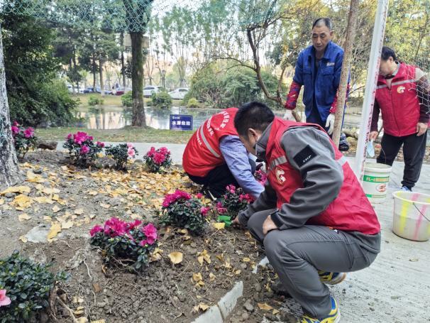 在西航港街道寺圣社区,针对小区外乒乓球场地周边绿化不足、杂物堆积的问题,战旗红志愿者补植了麦冬、杜鹃花苗等绿植,美化社区一角,让小区杂乱处焕然一新。