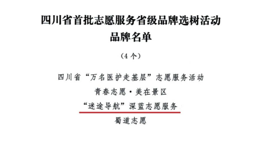 近日,四川监狱“迷途导航”深蓝志愿服务品牌被省委社会工作部、省委宣传部、省民政厅、团省委联合授予四川省首批省级志愿服务品牌,成为首批入选的四个省级品牌之一。