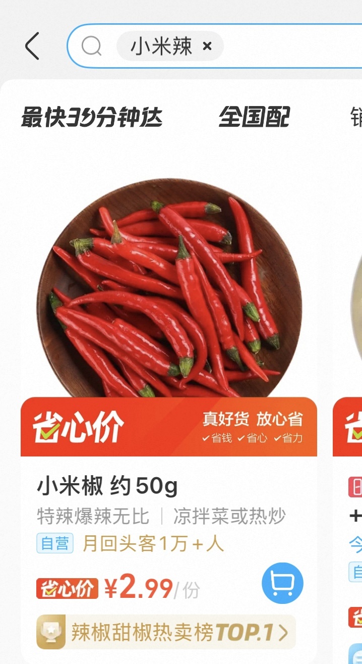 某电商配送平台,小米辣零售价折合29.9元/斤。