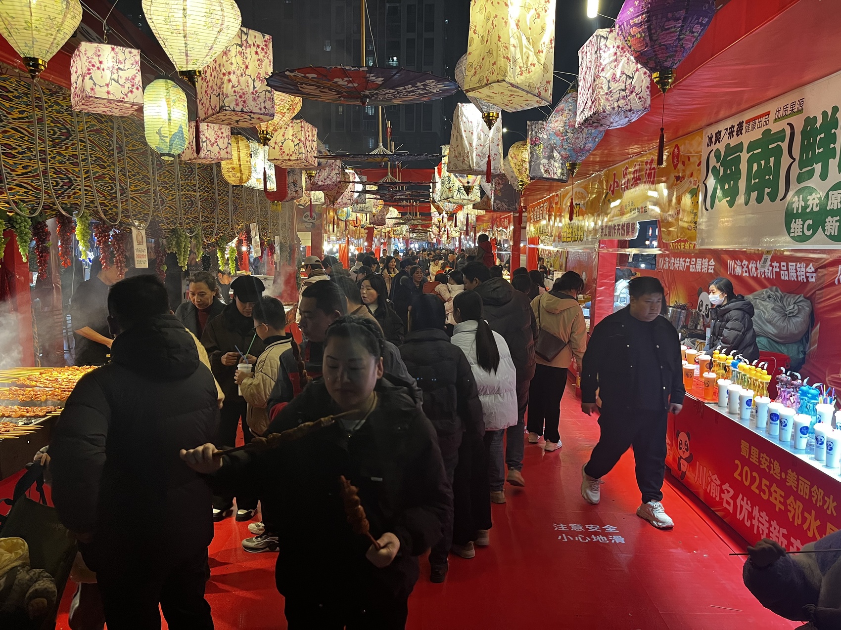 “感觉比过年还热闹,准备和朋友多带些当地特产回去。”12月23日,在广安市邻水县“2025川渝名优特新产品展暨非遗之夜美食游乐嘉年华”活动上,重庆游客白小娇在美食长廊流连忘返。该市集汇集全国各地特色小吃,满足人们 “吃穿游购娱”一站式需求,现场既有本地市民参与,也有外地游客专程前来。据悉,活动将持续至12月27日,为各地游客带来民俗文化表演与消费体验。