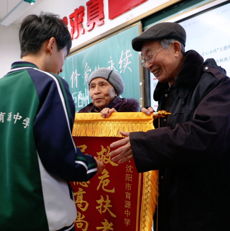 12月22日,冬日的沈阳寒意正浓,但育源中学的校园内却暖流涌动。曾在地铁滚梯上勇敢“逆行”、救下八旬夫妇的初三学生高伟峻,在这一天迎来了特殊的“家人”与全校师生的致敬。